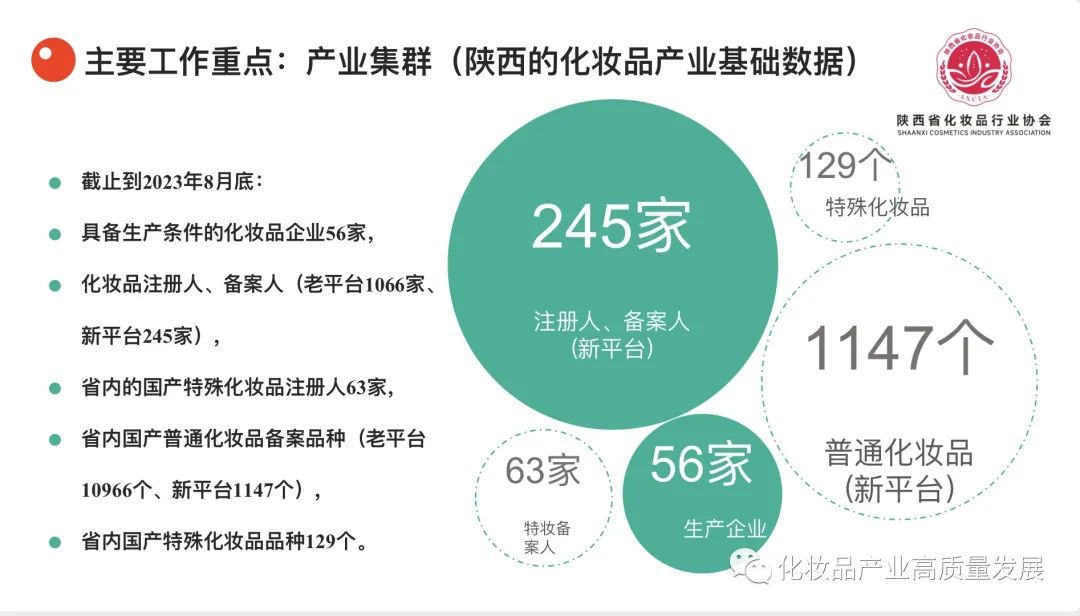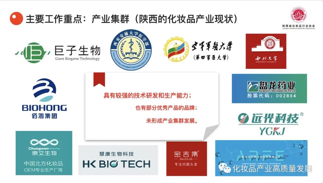陕西省化妆品产业,具有独特优势,源远流长的历史文化沉淀、秦岭终南山的丰富植物资源、科研院校云集、国家中心城市、一带一路核心起点、生物科技企业品牌众多……,却又未能真正转化为预期的效果。把握脉络后,究其原因,还是需要产业集群式发展,才能实现陕西化妆品乃至生物医药产业的高质量、跨越式发展。