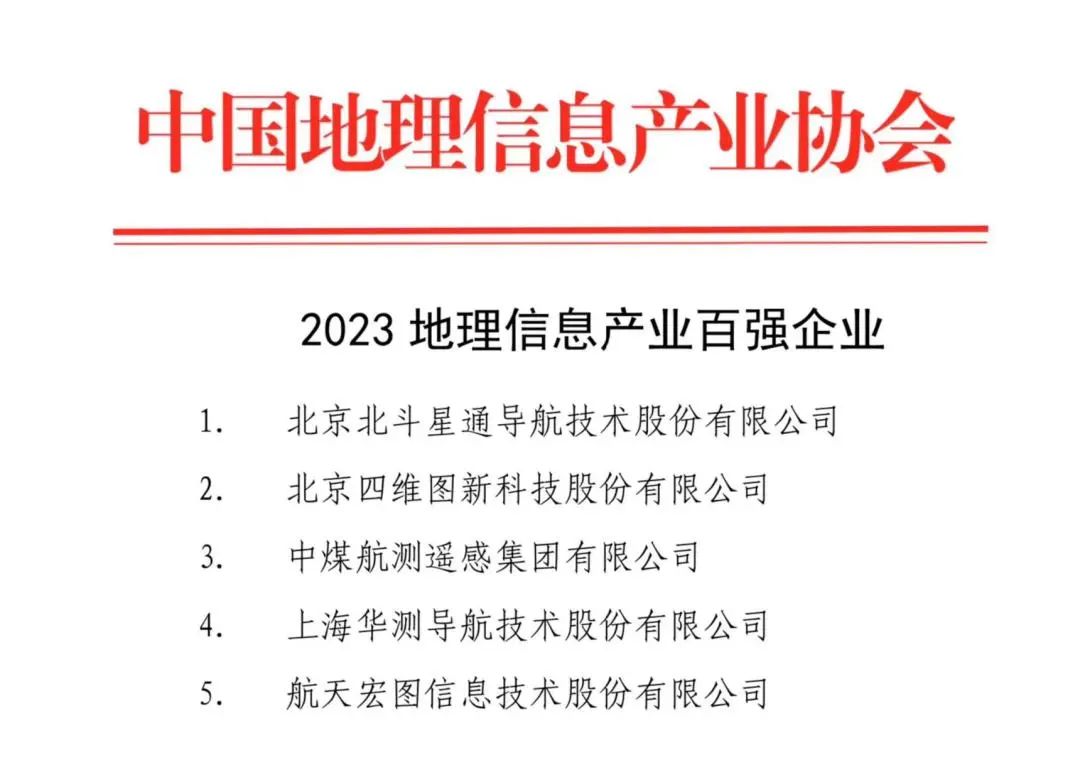 为贯彻落实习近平新时代中国特色社会主义思想,进一步落实自然资源部关于促进地理信息产业高质量发展的要求,树立优秀企业品牌,促进产业高质量发展,中国地理信息产业协会,依据各企业最近一年地理信息业务营业收入,由高到低排序,排出2023地理信息产业百强企业榜单。北斗星通连续入选该榜单,始终名列前茅,并且四度荣登百强榜首。