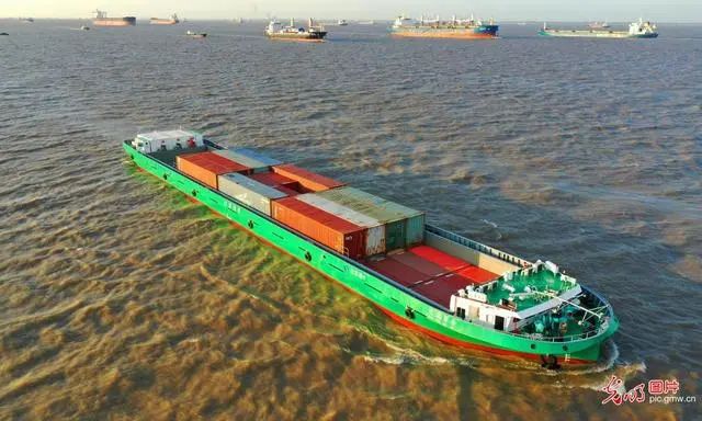 ▲ “江远百合”号的纯电动集装箱运输船