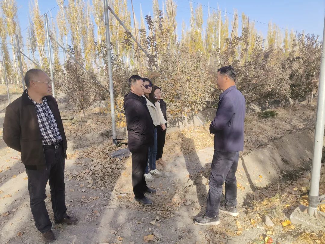 11月10日下午,二师农科所副所长崔龙一行三人,先后在农五连与乃门莫墩村兵地共建大棚建设现场,园六连有机苹果园进行实地调研活动。