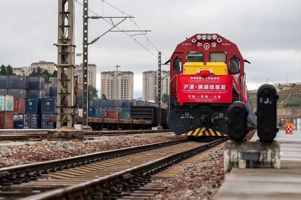 2023年10月8日,“沪滇·澜湄线”国际货运班列从王家营中铁联集昆明中心站驶出 摄影/胡超