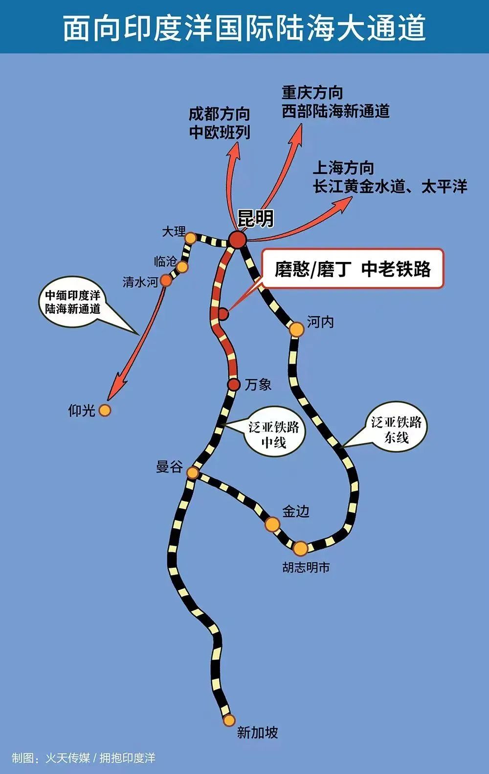 “澜湄蓉欧快线”(罗勇—万象—昆明—成都—布达佩斯)全新开通,实现东南亚至欧洲铁路直达,也让昆明和成渝经济圈紧密相连