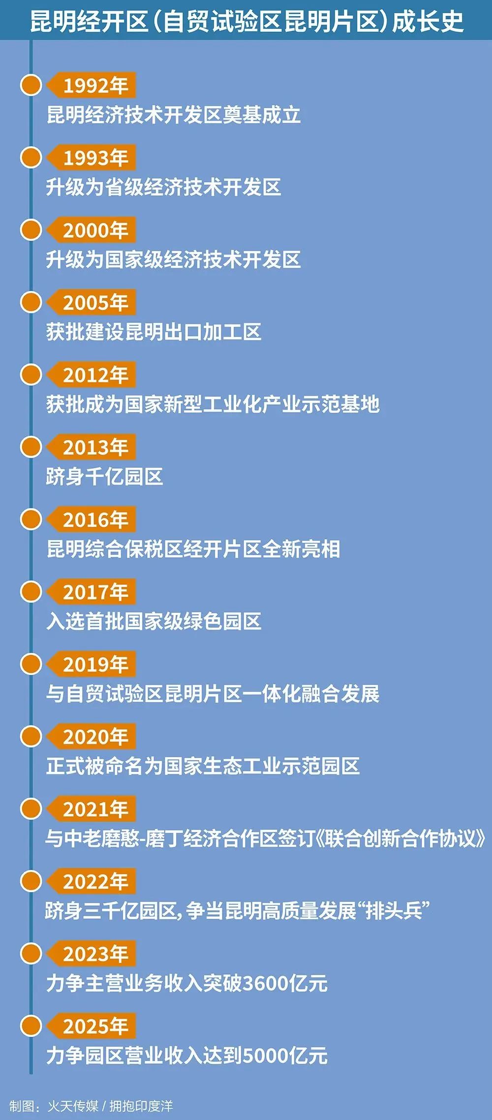 从以“三资”企业为先导,集中发展先进的加工项目,同步发展商业、贸易、房地产等第三产业,到紧抓高新技术、生物资源开发项目形成高起点、高投入、高效益的产业群体,再到建立以装备制造、新材料、现代物流、生物医药及大健康、电子信息制造及数字经济五大产业共生互促发展的产业体系,昆明经开区(自贸试验区昆明片区)优势一步步叠加,产业一步步迭代,一步步引领昆明新的经济增长点,成为云南、昆明产业发展的龙头。