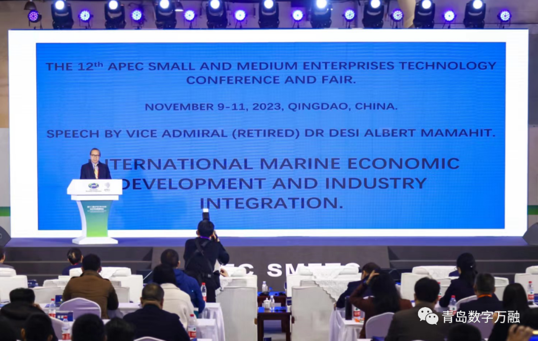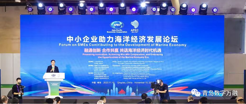 2023年11月10日上午,第十二届APEC中小企业技术交流暨展览会中小企业助力海洋经济发展论坛在山东青岛圆满召开。此次论坛以“融通创新 合作共赢 共话海洋经济时代机遇”为主题,由工业和信息化部以及山东省人民政府主办,中国中小企业发展促进中心、中国中小企业国际合作协会、山东省工业和信息化厅、青岛市人民政府承办,青岛市海洋发展局、青岛市民营经济发展局、中国邮政储蓄银行青岛分行和青岛数字万融共同协办。