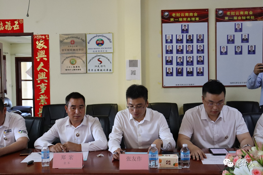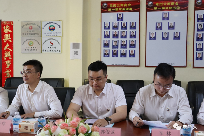 刘浩执行会长简要汇报了商会企业在老挝开展的文化交流、文化传播活动,商会会员企业积极承担责任和使命,积极响应“一带一路”建设,主动融入中老铁路三年行动计划。