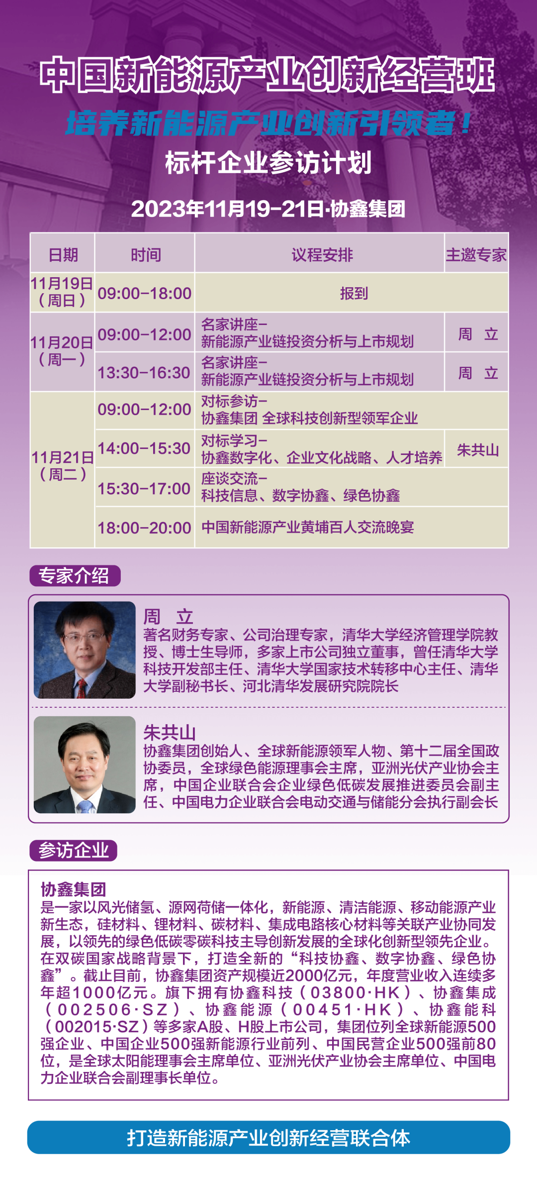 对于广大企业家而言,“风、光、水、核,动能、氢能、储能、智能” 等新能源产业前景无限,是企业创新谋发展的新蓝图、新赛道,是企业奋斗启新篇的新机遇、新引擎。《中国新能源产业创新经营班》依托清华大学等高校的院士科学家及智库产业强大资源, 打造 “新能源产业一政产学研用” 创新联合体!赋能和培育“新能源产业创新经营引领者” !企业赖之以强,国家赖之以盛!