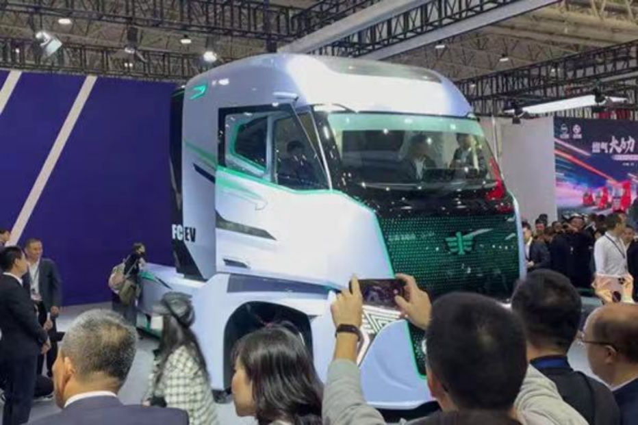 引人侧目的是,一汽解放和东风商用车都借展会之机,展出了旗下概念性的低碳产品,并给行业人士留下深刻印象。一汽解放的两款前瞻技术产品“一车一舱”中的“星熠”燃电前瞻车,搭载自主研发的高功率燃料电池发动机,具有超强动力、超长续航、超级智能等优势。尽管看起来这款车在技术路线上依然沿用的是氢燃料电池产品的理念,但是至少在外观还是带来了一丝新意。由于现场只是展出了一款概念式的车头,且设置了单独参观区,因此在科技配置方面无法得到进一步的信息。