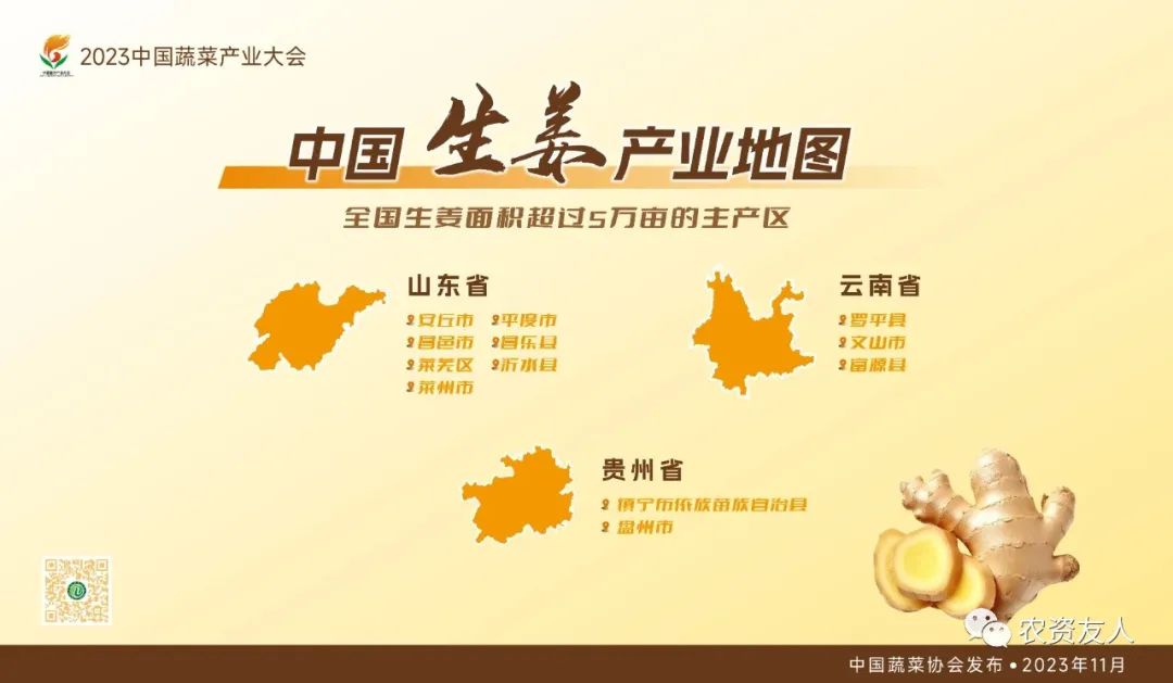 生姜种植面积在5万亩以上的主产区共有12个,包括山东省安丘市、昌邑市、莱芜区等7地,云南省罗平县等3地,以及贵州省镇宁县、盘州市。
