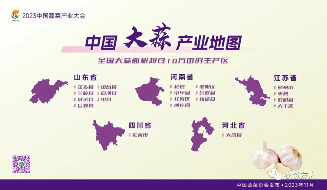 11月8日,中国蔬菜协会在湖南省常德市汉寿县举行的2023中国蔬菜产业大会上,发布了大蒜、生姜和西兰花三个蔬菜品种的产业地图。