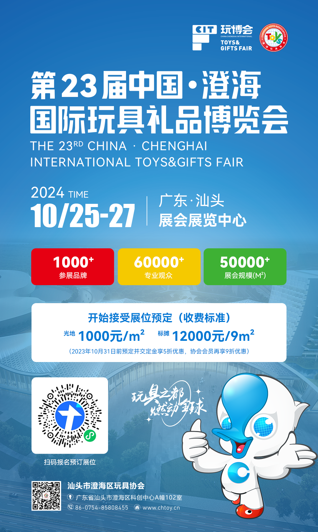 在汕头市委市政府和汕头市澄海区委区政府的大力支持下,第23届中国·澄海国际玩具礼品博览会定于2024年10月25日至27日在汕头市展会展览中心(将于2024年6月建成)举办。第23届中国澄海国际玩具礼品博览会主办单位仍然是汕头市澄海区玩具协会。