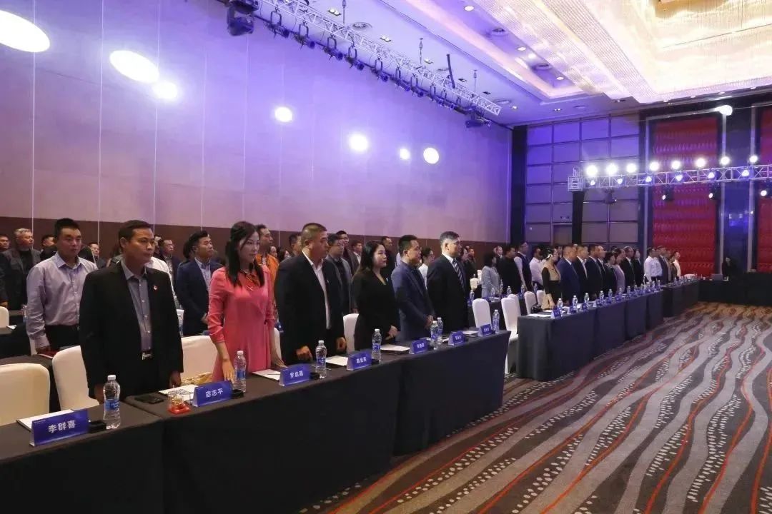 与会人员全体起立唱响《国歌》。