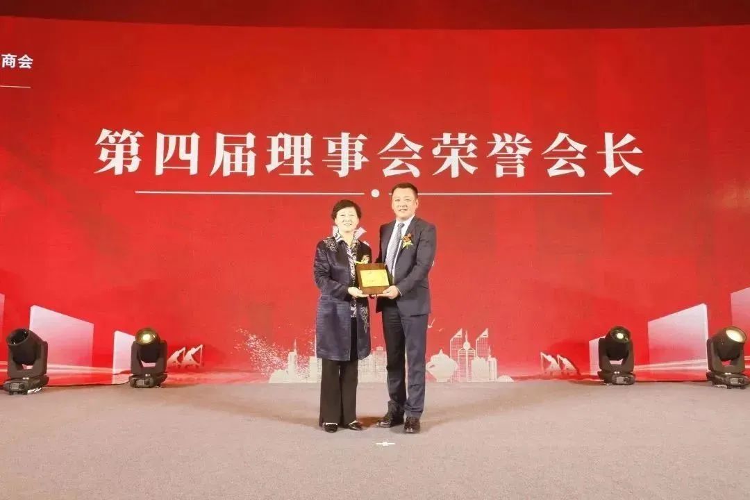 会长张学松为第四届理事会荣誉会长杨丽授牌。