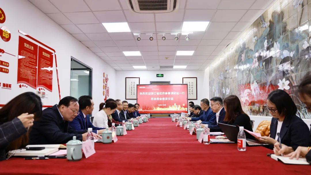 为贯彻落实省委“地瓜经济”提能升级“一号开放工程”决策部署,11月8日至10日,由浙江省政府办公厅一级巡视员黄信、省工商联原副主席、调研组组长张必来带队的浙江省政府参事调研组一行7人来商会开展专题调研。
