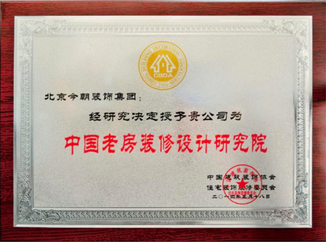 随着我国居住装修转向存量房市场的趋势,今朝装饰在深入研究的基础上,于 2008 年率先组建了以电气工程、水暖通风、房屋结构拆改加固、环保施工等领域的专家为主导的老房装修专家团队,为老房装修提供更多的技术支持与创新研发。老房装修专家团队自组建以来,投入大量的资金与精力,先后出版发行了《中国老房装修标准指南》Ⅰ和Ⅱ,申请国家专利150 余项并推出多项全新的施工工艺,奠定了今朝装饰在装饰装修行业的权威地位。2015 年今朝装饰老房装修专家团队被中国建筑装饰协会评定为中国老房装修设计研究院,更是对今朝装饰十几年来坚持与努力的肯定。