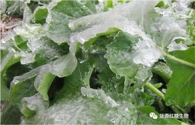 在气温降到0℃自然冰点以下时,可能还会导致作物发生更严重的低温冻害,因为在使用古法红糖SOC防冻营养液喷到作物茎叶表面的水液在低温的情况下迅速结冰结晶会刺穿或者破坏作物细胞组织。