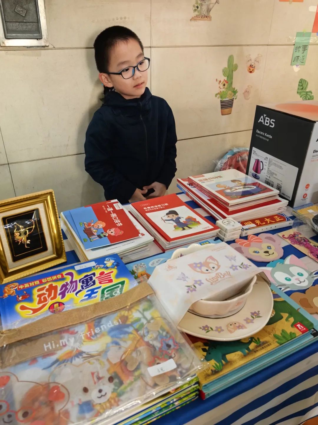 本次活动,共设立了五个摊位。以家庭为单位,孩子们为小掌柜,出售闲置物品。
