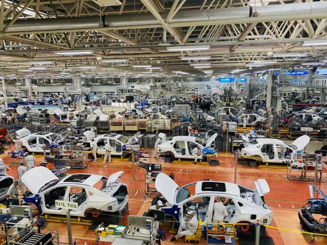 在总装车间,众人近距离观摩了埃安生产线机器人、机械臂、无人车等自动化设备的高速运转和协同运作、一辆辆新车从生产线上诞生的过程,感受新能源智能化生产线和生产工艺。