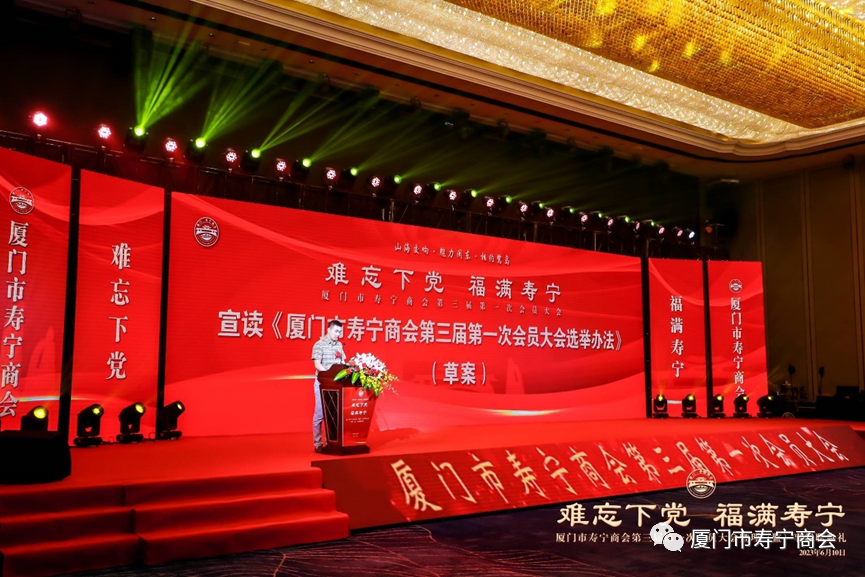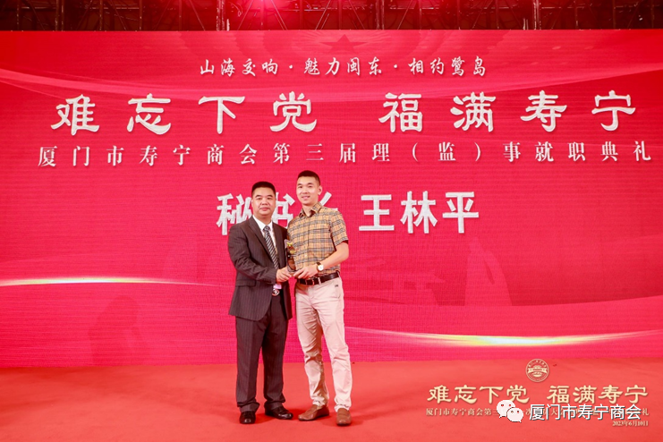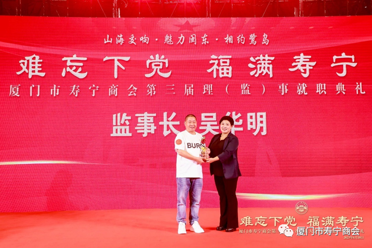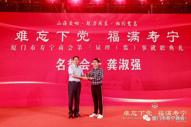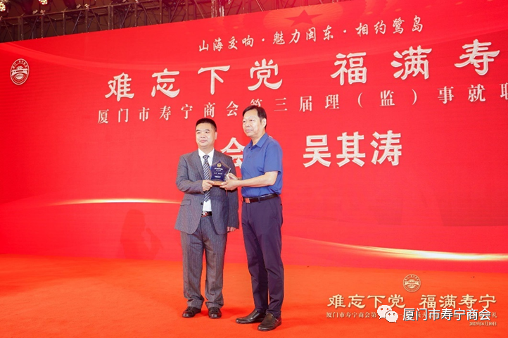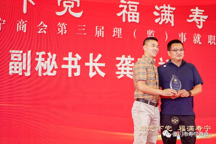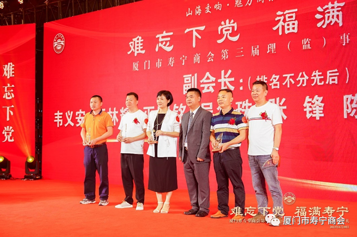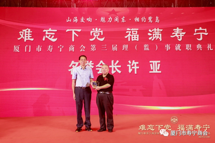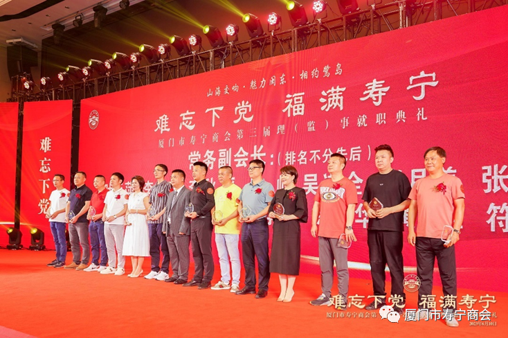 在当晚进行的就职典礼上,厦门市工商联领导,寿宁县领导以及厦门市寿宁商会第三届理事会成员,为厦门市寿宁商会作出重大贡献的乡贤和第三届理事会成员进行了隆重的授牌仪式,标志着厦门市寿宁商会的工作揭开了崭新的一页。