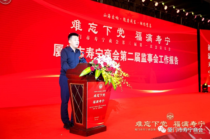监事长吴华明宣读厦门市寿宁商会第二届理事会工作报告,回顾总结了第二届理事会的工作内容,商会始终坚持省工商联的正确领导,以服务经济大局、弘扬寿宁文化为依托,以促进非公经济健康发展和非公人士健康成长为目标,为家乡经济发展添砖加瓦。