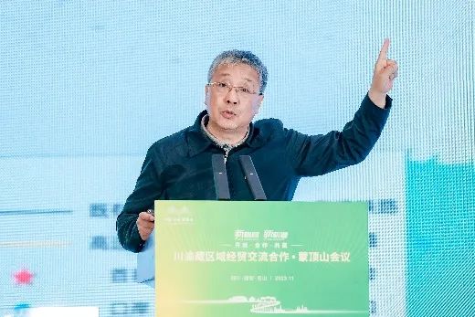 会议以“新格局 新机遇——开放·合作·共赢”为主题,深入践行国家战略规划,进一步打通合作壁垒,深度挖掘三地在交通、文化、产业、政策等方面的合作潜力,打造多元化合作交流平台,推动区域协同发展迈上新台阶。出席嘉宾有:国家发改委原副司长吴晓松;国务院发展研究中心产业经济研究部原副部长杨建龙;四川省工商联党组成员、副主席孙宁;重庆市工商联党组成员、副主席王进;西藏自治区工商联党组成员张蓉;雅安市市长彭映梅,副市长杨光,统战部部长李蓉,工商联主席杨力;名山区区委书记余云峰、副书记程叶;四川大学经济学院原则蒋永穆、西南财经大学西财智库主任、四川省委省政府决策咨询委员会委员汤继强;四川省川联零售业商会执行会长杨嘉琪、副会长王奇、鲜于剑、胡洁,以及川渝藏三地工商联领导、专家学者、川渝藏企业代表、商协会代表、西藏自治区驻成都办事处、雅安市及名山区相关领导和部门负责人,相关媒体代表参加会议。会上,雅安市委常委、统战部部长、总工会主席李蓉受市委书记夏凤俭和市⻓彭映梅的委托,代表中共雅安市委、雅安市⼈⺠政府和 150 万雅安⼈⺠,向莅临会议的领导嘉宾、企业家朋友表示欢迎。她表示,雅安区位优势显著,“⼀带⼀路”建设、⻓江经济带、成渝地区双城经济圈、川藏铁路建设等多重战略机遇在这⾥交汇叠加。雅安是成渝地区双城经济圈重要节点城市,承担着成渝地区⼤数据产业基地、成都都市圈重要功能协作基地、成渝后花园三⼤功能,同时雅安是川藏铁路雅安⾄林芝段的起点,是地理位置的川藏铁路第⼀城。当前,雅安坚持主动服务、⽤⼼服务、⾼效服务,聚⼒打造“四个⼀流”营商环境,⾼质量建设成渝地区⼤数据产业基地,⾼效率建设成都都市圈重要功能协作基地,积极谋划设⽴川藏(雅安)合作⼯业园区,为⼴⼤企业家提供开放、多元的⾼能级发展平台。诚挚邀请川渝藏各类商会、企业家朋友们,前来雅安⾛访考察、观光旅游、投资兴业,共享雅安的⼭⽔之美、⼈⽂之韵、发展之势。与会专家吴晓松在致辞中指出,川渝藏地区处在“一带一路”和长江经济带的联结点上,在国家区域发展和对外开放格局中具有独特而重要的作用。川渝藏地区要完整、准确、全面贯彻新发展理念,主动融入新发展格局,进一步强化经济承载和辐射带动,推进“行政边界、地理边界、经济边界和社会文化边界”多维耦合,促成更多的项目成果,为中国经济高质量发展注入强大动力。 四川省工商联党组成员、副主席孙宁,重庆市工商联党组成员、副主席王进,西藏自治区工商联党组成员张蓉先后在致辞中表示,川渝藏区域经贸交流合作·蒙顶山会议的召开,搭建了三地民营经济交流合作桥梁,对于优化区域经济布局,厚植高质量发展新动能,推动加快构建新发展格局具有重要意义。川渝藏三地工商联将以此次会议成功召开为契机,增强抱团发展、合作发展、协同发展的意识,进一步推动三地合作向更高层次、更广领域深化拓展,共同谱写区域协同发展新篇章。 名山区委书记余云峰表示,川渝藏地区自古以来就在经贸投资、交通物流、人文交流等各领域有着深厚的互通基础。当前又共同处在成渝地区双城经济圈建设、川藏铁路、长江经济带、新时代推进西部大开发形成新格局等国家战略交汇点,迎来前所未有发展良机。希望通过本次会议,汇聚政、企、学、研各届智慧,为未来川渝藏区域协同发展提供新思路、新方案、新动能。
