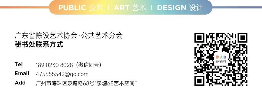 广东省陈设艺术协会/公共艺术分会作为“广州国际公共艺术博览会” 的战略合作单位,在这一届博览会上携会员单位以“公共艺术的空间印记”为主题策展参与;并在博览会期间邀请行业专家、艺术创作者、数字艺术企业代表等通过主题分享的形式从公共艺术在空间中的多种印记中解读公共艺术存在的意义。