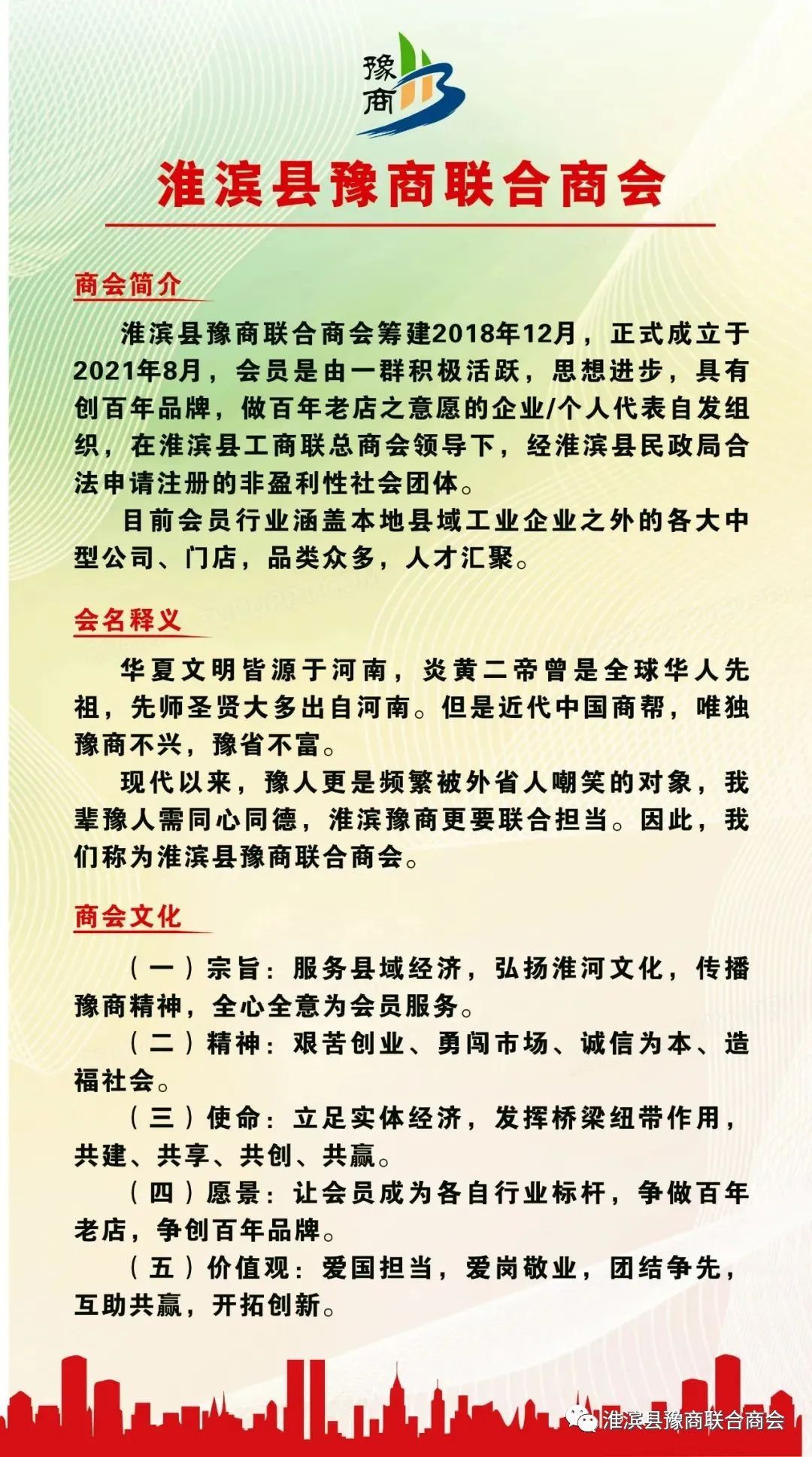 淮滨县豫商联合商会四个共享即共享客户、共享经验、共享人脉。豫商联合商会的四个共享意义深远。大家通过共享客户、共享经验、共享人脉和共享政策,会员企业可以更好地整合资源,实现互助共赢,促进县域经济内外循环,助力县域经济高质量发展。
