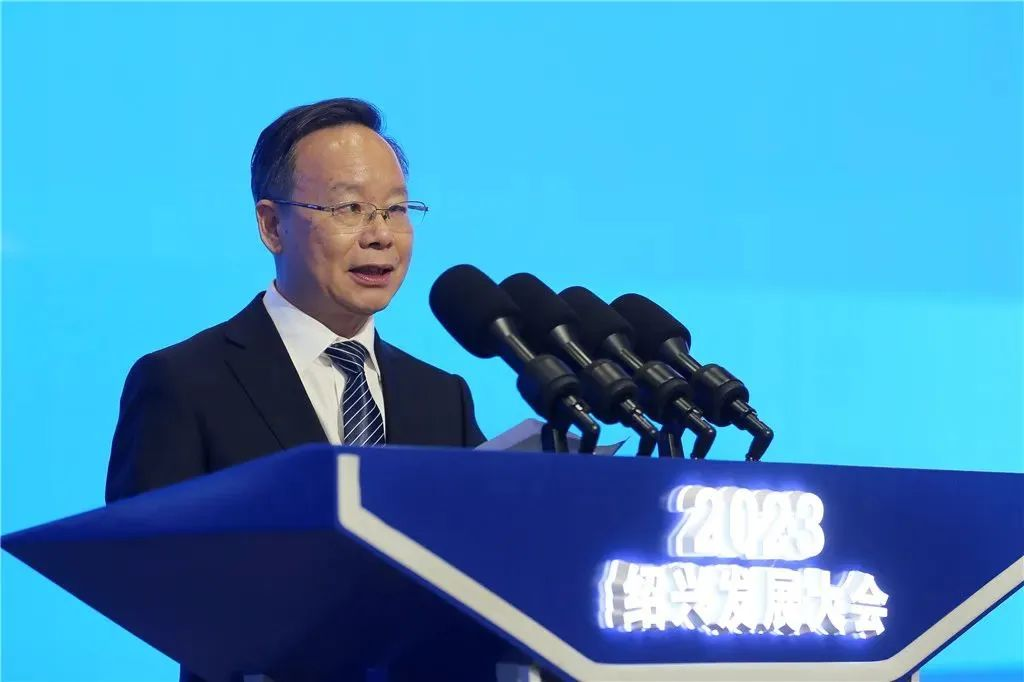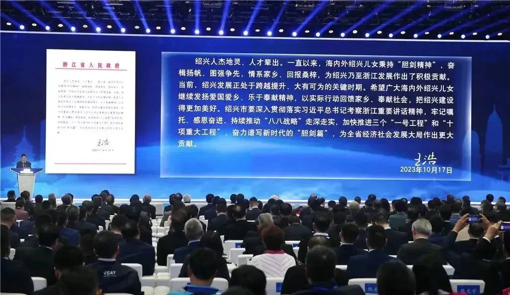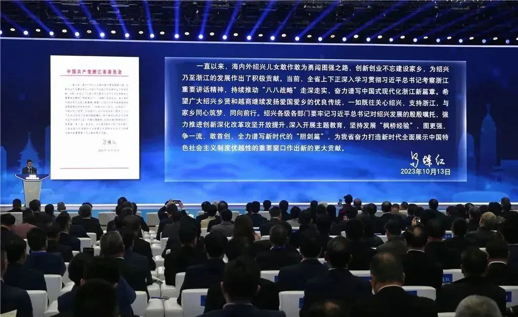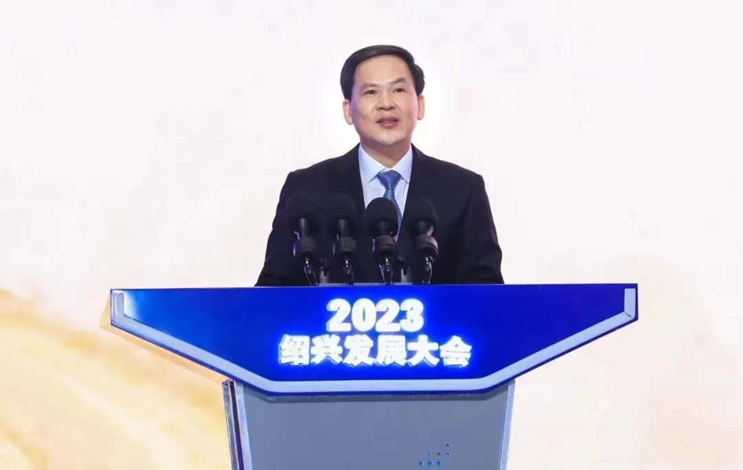 图为绍兴市委书记温暖作主旨演讲