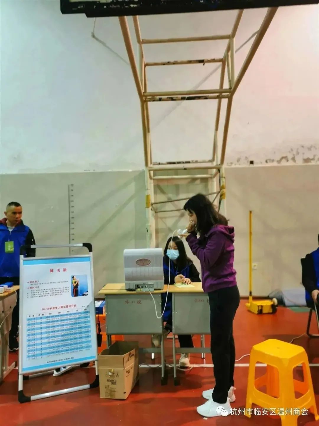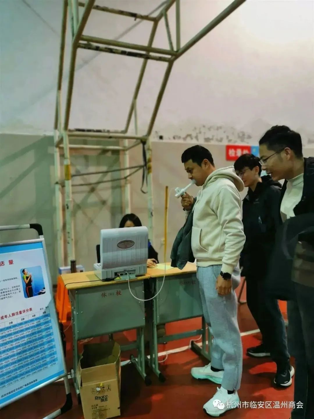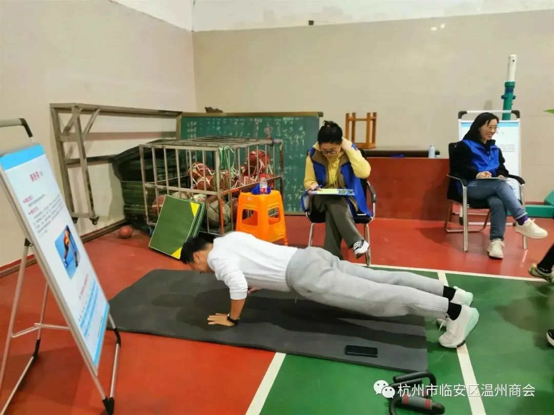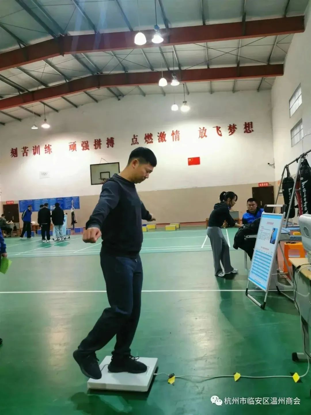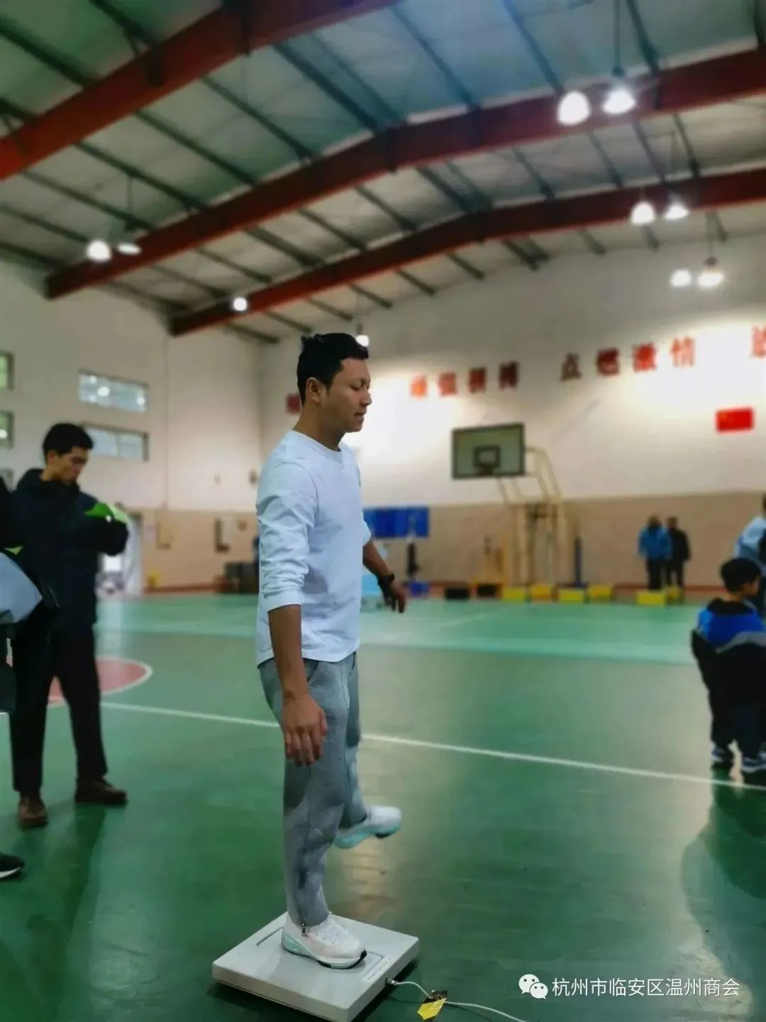 2023年11月11日上午,杭州市临安区温州商会组织会员黄碧茹、赵章伟、毛达亮三人代表临安区工商联在临安区锦城第二初级中学室内体育馆参加了国民体质活动。
