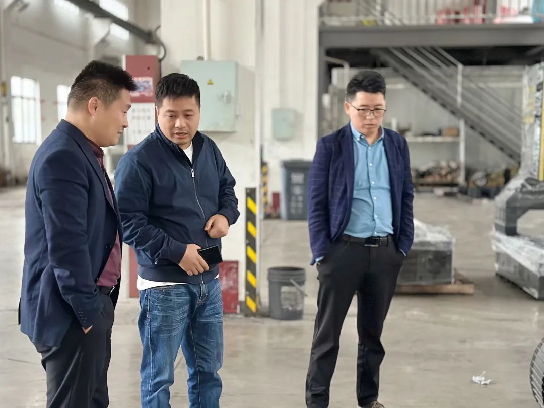 浙江奇沃智能设备有限公司总经理孙德胜对商会一行的到访表示热烈的欢迎,并先后参观了集团的办公大楼、车库以及生产车间,零距离感受了机械设备生产一线,介绍公司的发展过程、业务范围及项目案例,最后在总经理办公室进行了详细的座谈。