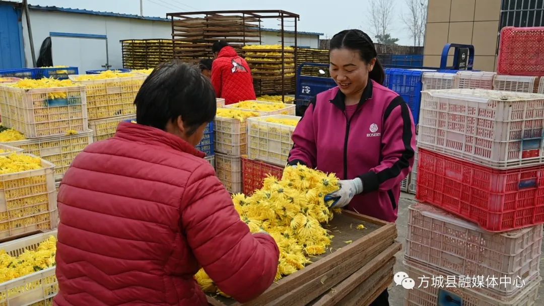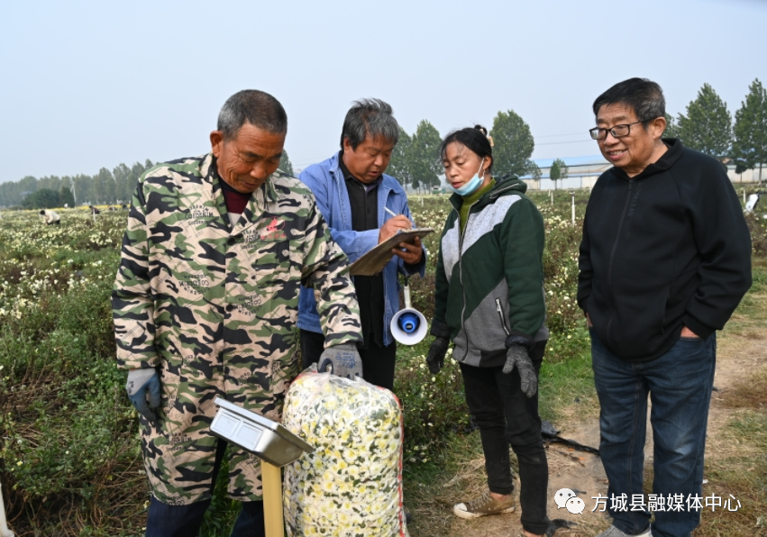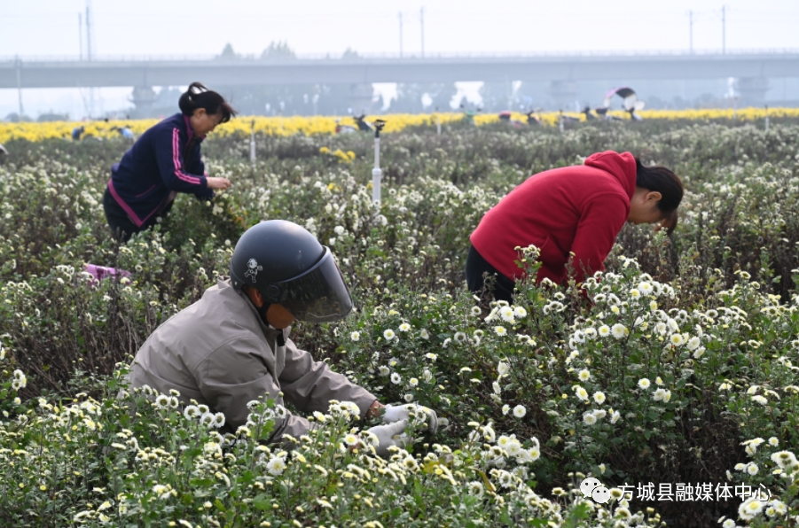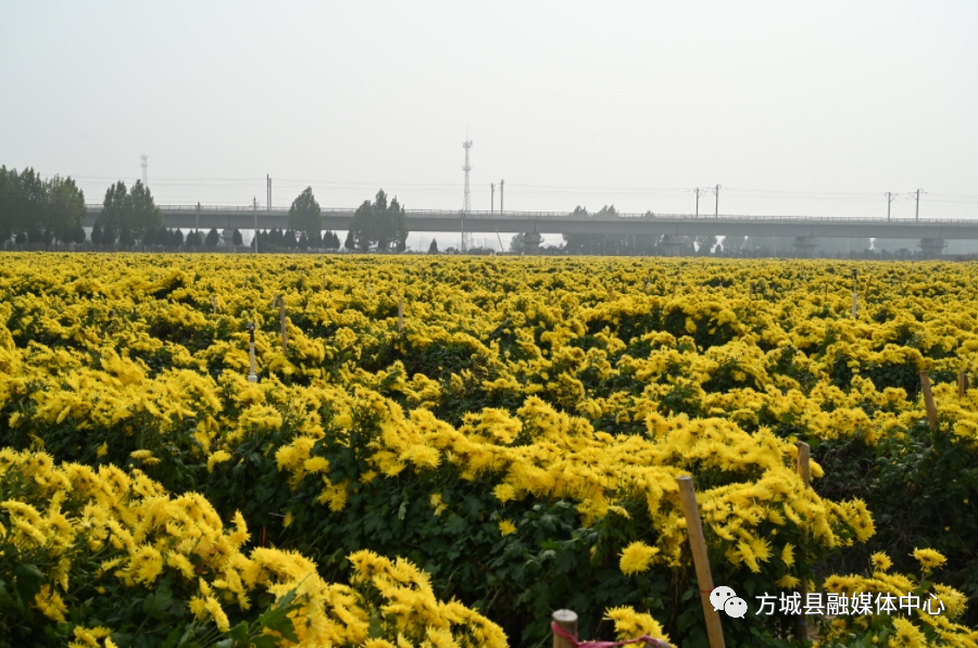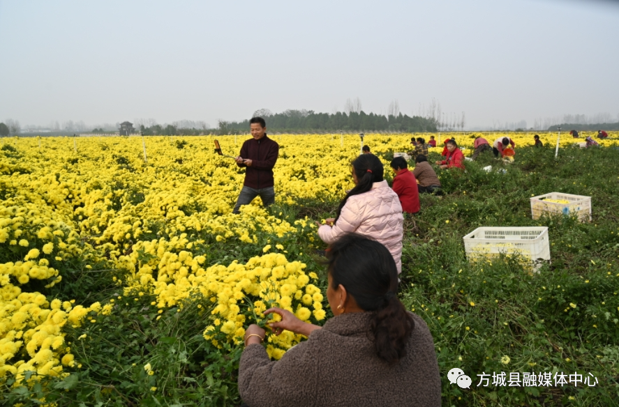 11月9日,走进方城县清河镇廓封村菊花种植基地,一阵清新淡雅的香气扑面而来,一丛丛菊花竞相绽放,似一片金黄色的“地毯”,许多村民正在辛勤采摘,不少游客行走在花海中,拍照打卡,不少网络达人,在菊花地里现场直播,向人们展示着丰收的美景和醉人的田园风光。