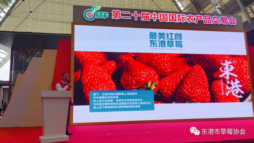 在辽宁优质特色农产品(青岛)推介会上,“东港草莓”代表辽宁七品的“辽果”,由东港市草莓协会会长马廷东进行现场推介,全方位展示东港草莓产业优势和独特品质,提升“东港草莓”品牌知名度。