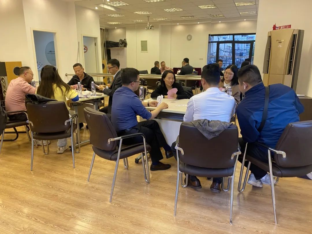 活动开始前,成员共同商讨了此次掼蛋比赛有关事宜,初步确定了本次活动的报名方式、组织安排和竞赛规则。比赛开始后,参赛选手迅速进入状态,开始了紧张而有趣的牌技较量。牌桌上,选手们审时度势、与队友配合默契,接连打出精彩的牌形组合,“大秀”牌技。