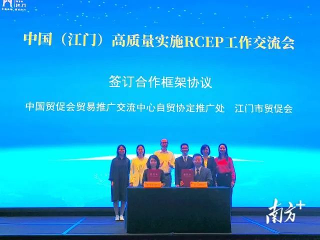 会上,中国贸促会贸易推广交流中心自贸协定推广处与江门市贸促会签订了《自由贸易协定(FTA)合作框架协议》。