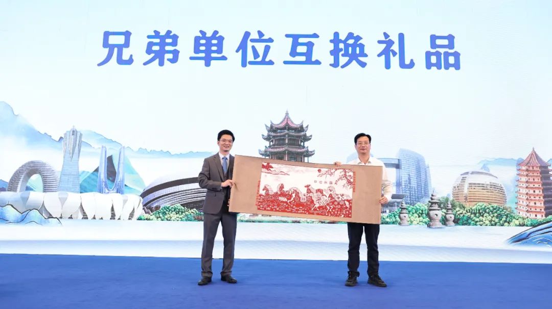 县委统战部副部长、工商联党组书记吕坤新向杭州市漳州商会赠送贺礼