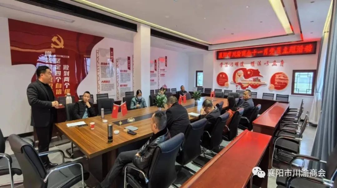 11月13日,为贯彻落实党的二十大精神,深入推进习近平新时代中国特色社会主义思想主题教育,牢牢把握“学思想、强党性、重实践、建新功”要求,充分发挥商会党支部的战斗壁垒作用,襄阳市川渝商会在会议室开展十一月党员主题活动,由支部委员会书记周大东主讲,会长钟开陆、执行会长兼秘书长罗志祥、常务副会长程勇、会员毛作明、唐虎、孙家民、会员家属以及秘书处工作人员参加。