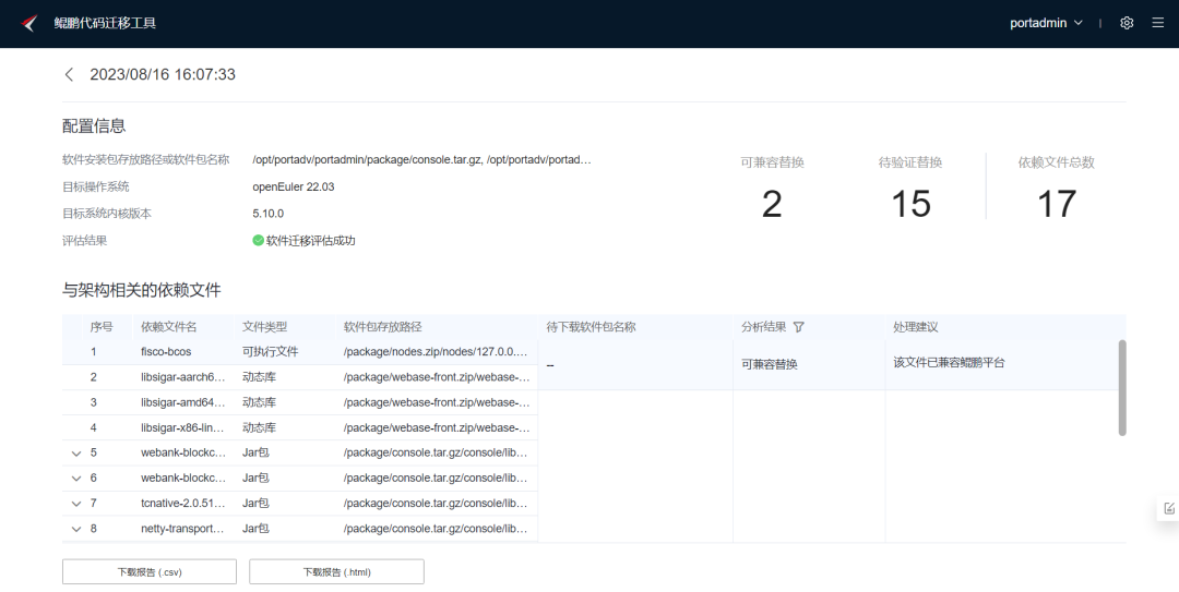 在项目实施初期,开发人员需要将软件平台快速迁移到鲲鹏。该系统主要由Java和C++语言开发,包含区块链底层及多个Java应用模块,采用 SpringCloud+SpringBoot 微服务架构,代码体量较大;针对各个业务系统拆分多个独立服务, 且第三方软件众多,包含:Redis、Nginx、Tomcat, 及相关MySQL服务等,经分析采用手动迁移,整个系统预计需要8人天才能完成。而鲲鹏DevKit代码迁移工具可以实现依赖文件自动识别、兼容JAR包一键下载、代码修改建议一键替换,无须耗时耗力检查跟进。在鲲鹏DevKit的帮助下整个系统只用了2人天。