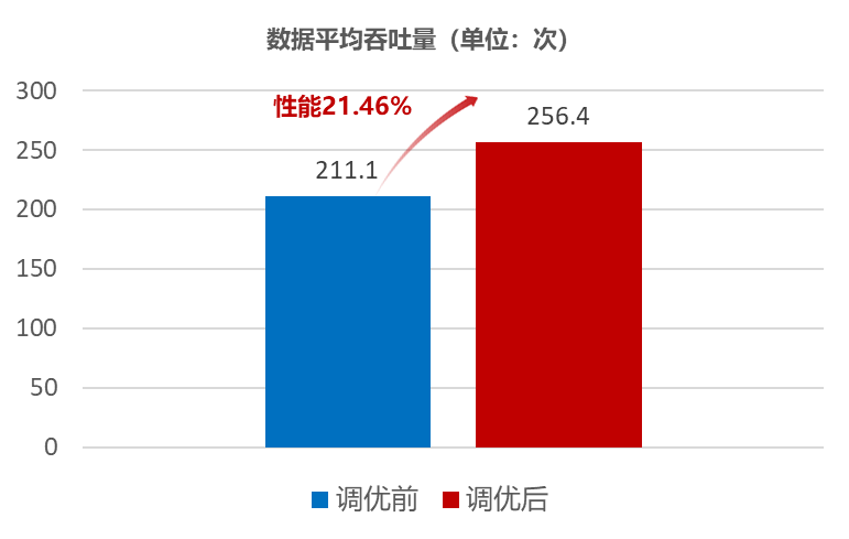 通过上述的优化分析,对比鲲鹏DevKit优化前,区块链政务服务协同数据治理平台的平均吞吐量由211.1提升至256.4,性能提升21.46%,性能的提升加快了数据接入与数据治理的实施效率,使得政务精细化管理服务水平的大幅提升。