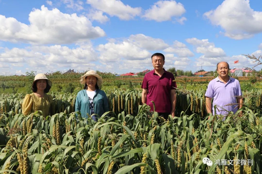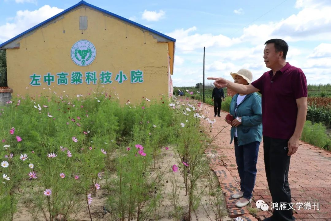 在左中高粱科技小院,满院种植了十几种高粱,错落有致,形态各异,高低不同,有晚熟的刚抽青穂,有早熟的像微熏泛起的红潮,有的齐肩高,有的一人高,还有像诗人郭小川诗句中所描写的青纱帐,长长的叶子随风舞动,那沙沙的声音宛如一首优美的音乐。孙会长一边带我们参观,一边为我们讲解,这么多品种的高粱,其中有一种高粱含有单宁成分,相当于土地上长出来的抗生素。这么多种类不同的高粱,是来自内蒙古科技大学的研究生“驻院”专研的科技成果,这里为他们筑起了科研平台,提供了实验基地,圆了一群有志青年的科研梦想,这真是栽了梧桐树,引来金凤凰啊!在引进科技力量的同时,为使会员熟练掌握生产实用技术,更好地推广科技小院成果,提高生产水平,商会组织会员开展系列的科技培训活动,平均每年举办集中培训班20次,培训会员和农牧民2000多人次。现场培训指导25场次,受益会员和农牧民1000多人次。自商会成立以来,大力发展以红高粱、谷子、大豆、绿豆等杂粮杂豆产业,随着种植面积的推广,农民也实现了真正意义上的增收。节水抗旱稻在湿润的土壤里抽出长长的穂子,结出饱满的籽粒,此项攻克了困扰农民多年的难题,这是一次划时代的科研成果,值得大面积推广。一排排低垂的谷穗,既不张扬,也不炫耀,仿佛是在感恩阳光雨露。红砖铺垫笔直的小路两旁,开满了五颜六色的鲜花,扑鼻的馨香伴着五谷的芬芳,就连呼吸都是如此香甜。赏过耕垄,环过阡陌,在我们面前忽然出现一片结满硕果的菜地,鲜嫩的茄子、红黄的西红柿、长长的豆角、紫绿相间的菜叶,还有好多好多,一时间目不暇接。只有热爱生活的人,用勤劳的双手播种、耕耘,用汗水浇灌这座科技小院,才会让谷更香,果更甜、花更浓。