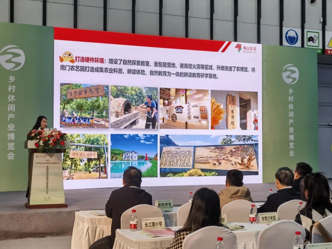 首先,南京上怡幼儿园研学校长成姣燕代表南门农艺园参加乡村融合研学与农文旅融合发展论坛活动,同时受邀参加的嘉宾还有国内一流的科研院校、教育机构、文旅企业专家学者等。