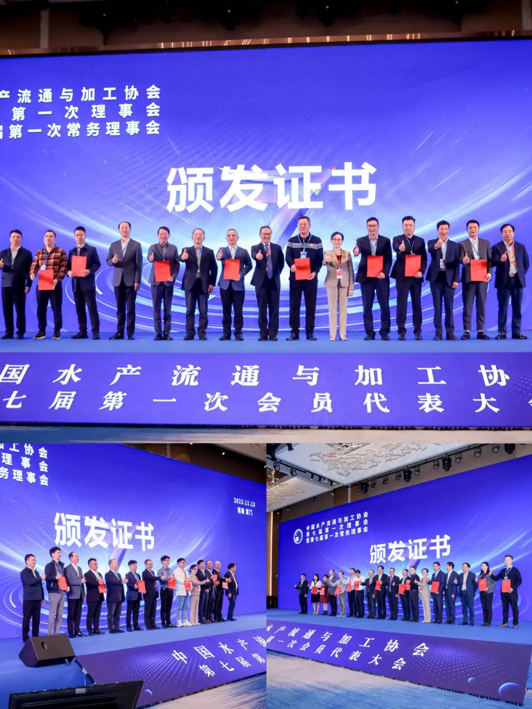 2023年11月13日,中国水产流通与加工协会第七届第一次会员代表大会在福建厦门顺利召开,来自全国28个省、市、自治区的会员单位代表参会。会议选举产生了新一届理事会、监事会成员。商会田纯青会长、吴益怀常务副会长、叶海斌副会长、姚泽勇副秘书长
