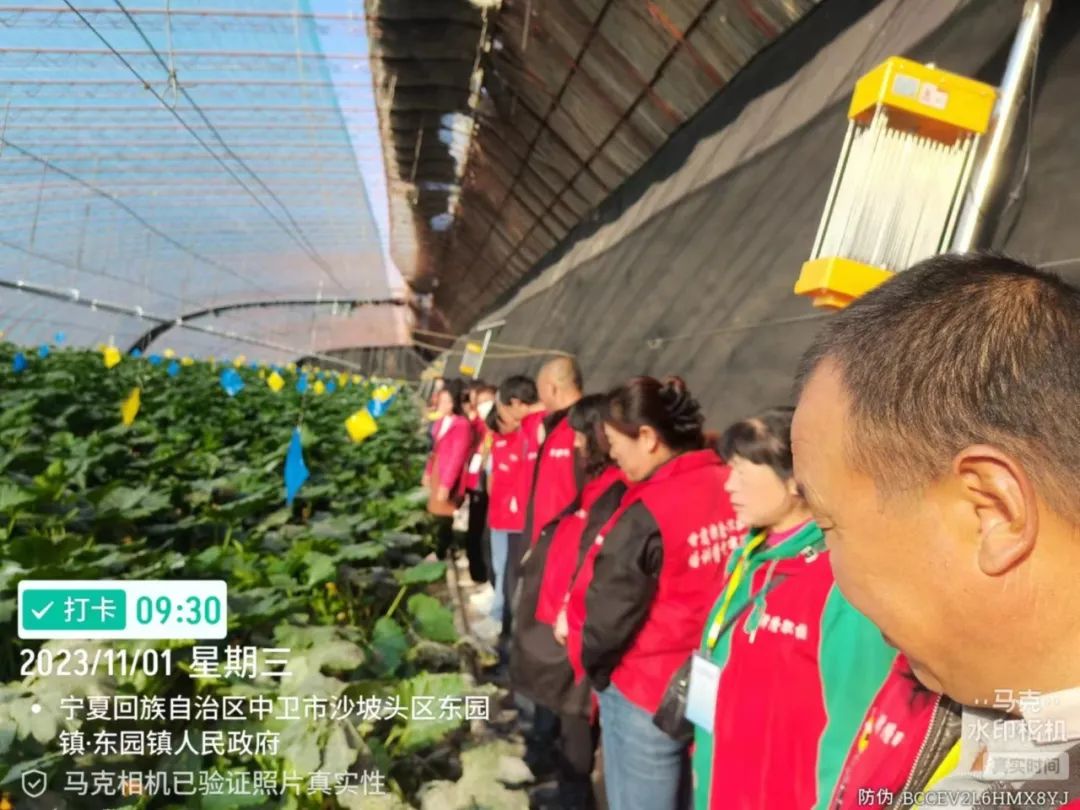 参训学员到中卫市宁夏普天瑞农农业有限公司、中卫市农发果菜流通农民专业合作社、中卫市三芳果蔬流通专业合作社、宁夏中卫市鼎腾蔬菜流通专业合作社、中卫市沙坡头区迎水桥镇鸣钟村乡村振兴示范点开展现场观摩学习。