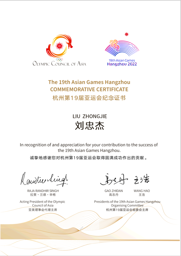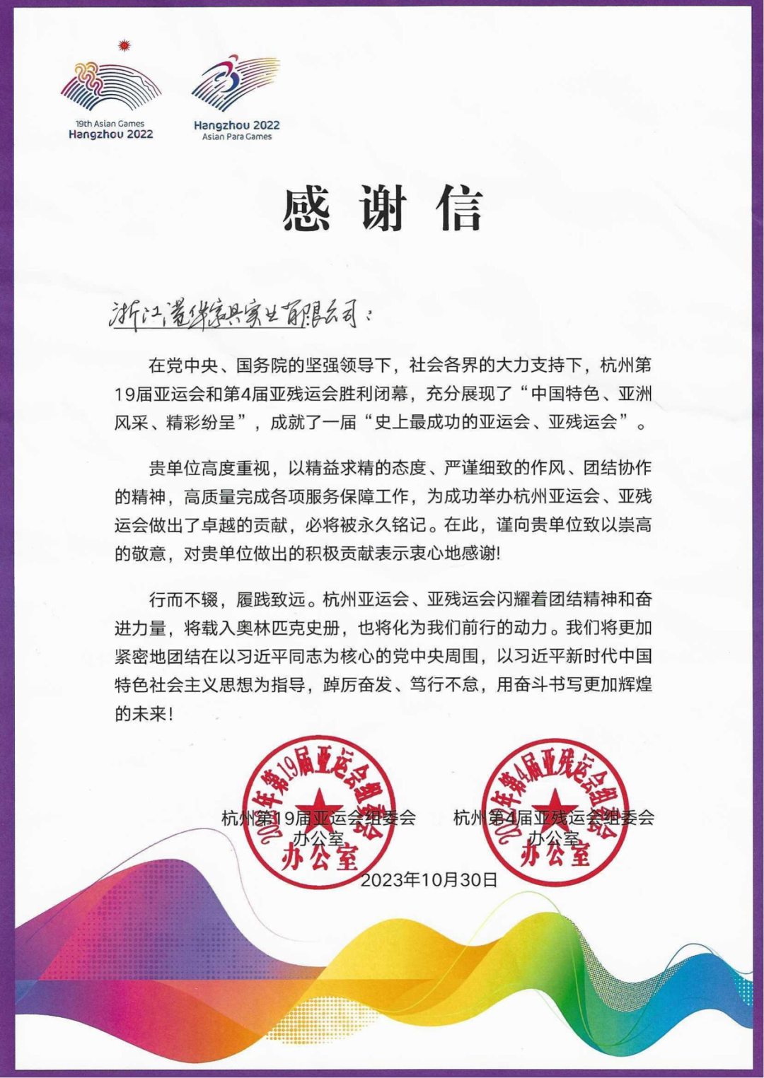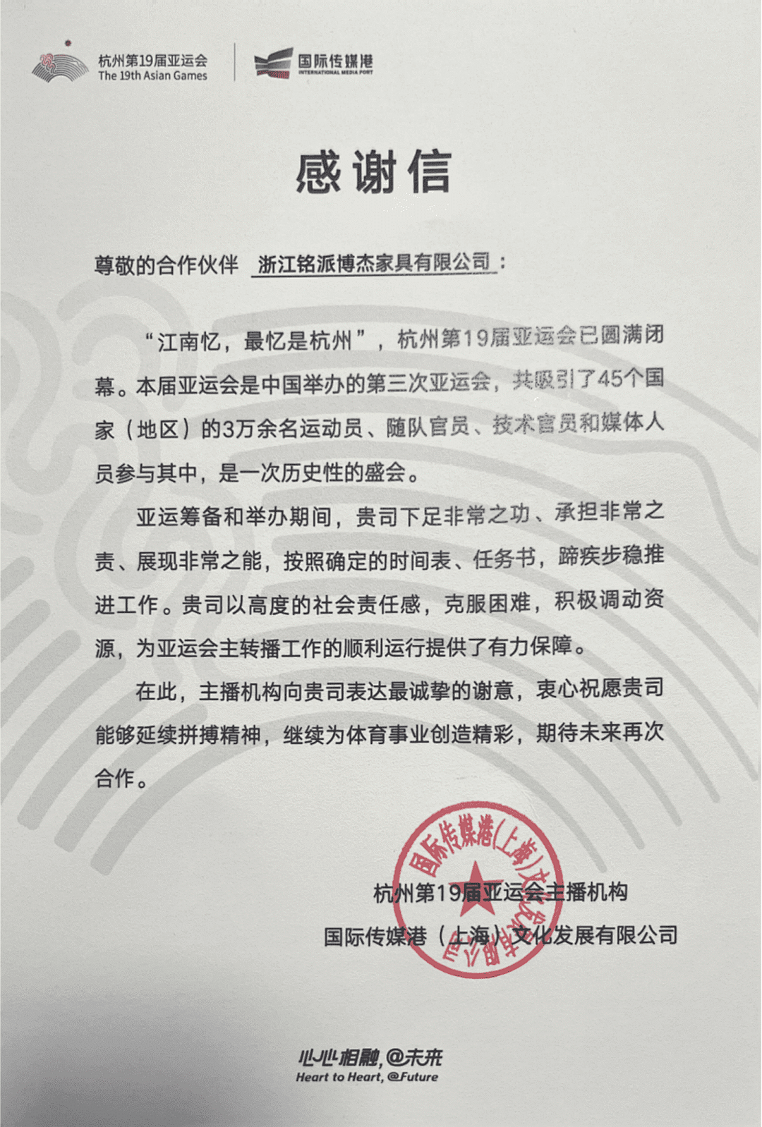 *亚运会官方感谢信