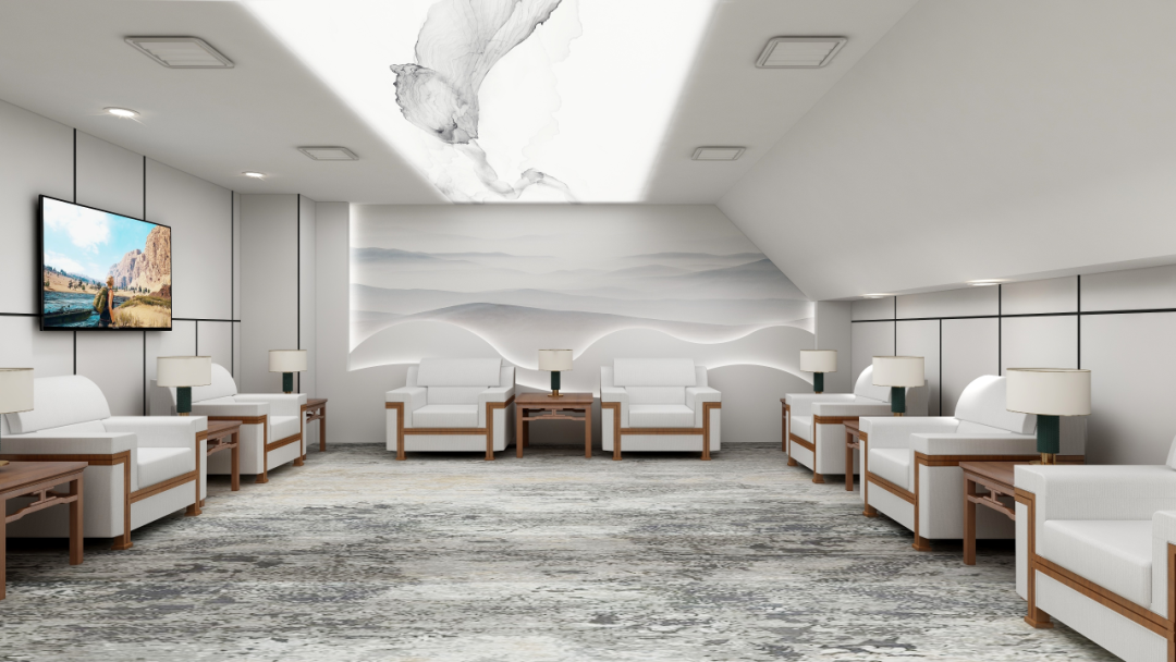 “一室清淡 一木温情 半日娴雅”。VIP贵宾室家具采用现在流行的新中式风格。在色调运用上布艺采用庄严的白色,配套茶几跟沙发修饰部分则以黑胡桃木勾勒,让简洁的线条呈现出优雅的质感,设计整体看起来更显庄严自在。