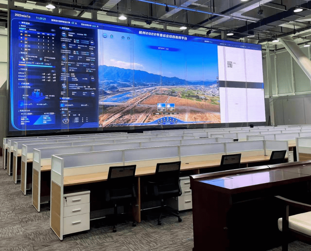 *上图分别为指挥中心、贵宾接待中心、亚残会主播中心、亚运会博物馆供应场景展示图