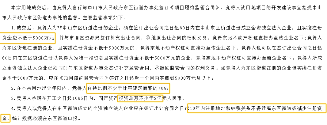 值得注意的是,该宗地块有着诸多严格要求: