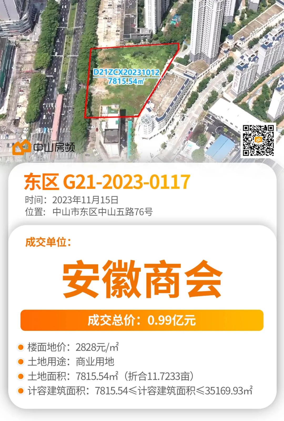 最终,该商业地块被安徽商会(广东徽商实业投资有限公司)以底价9948万元拿下,折合楼面价2828元/㎡!