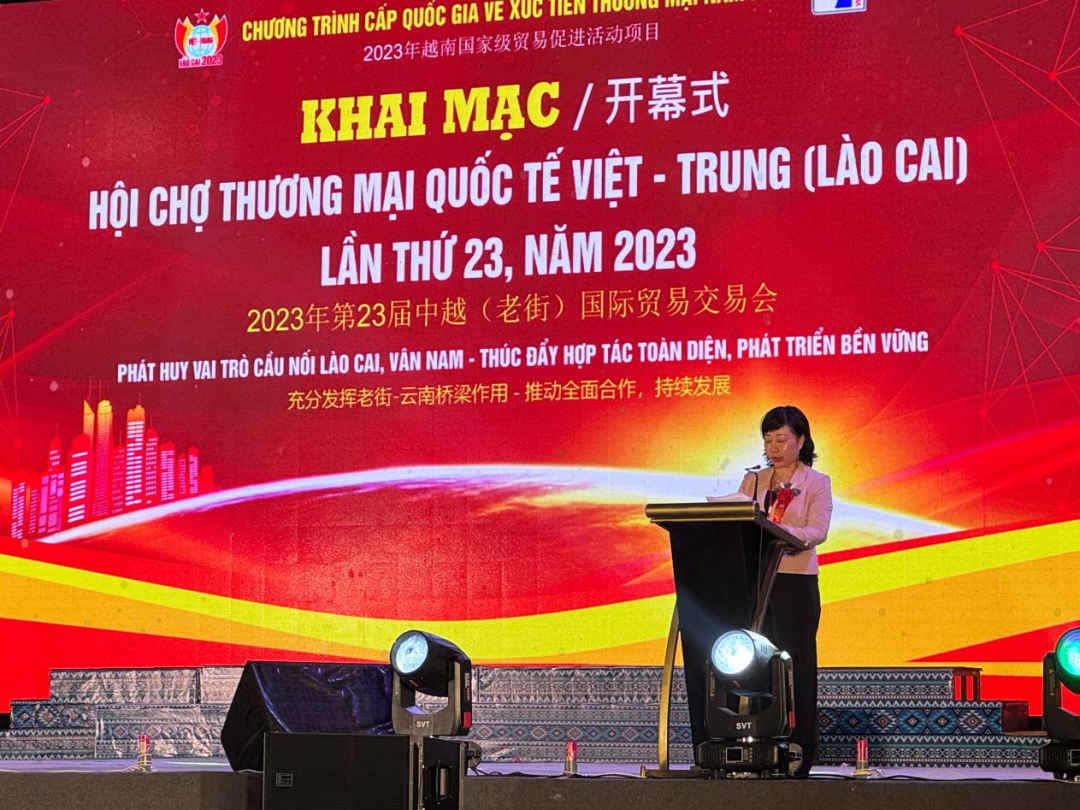 在越南老街开幕。中共红河州委副书记、州长罗萍,中国国际贸易促进委员会云南省分会副会长包文滔,云南省商务厅副厅长浩一山出席开幕式。云南省贸促会副会长包文滔代表主办单位致辞。
