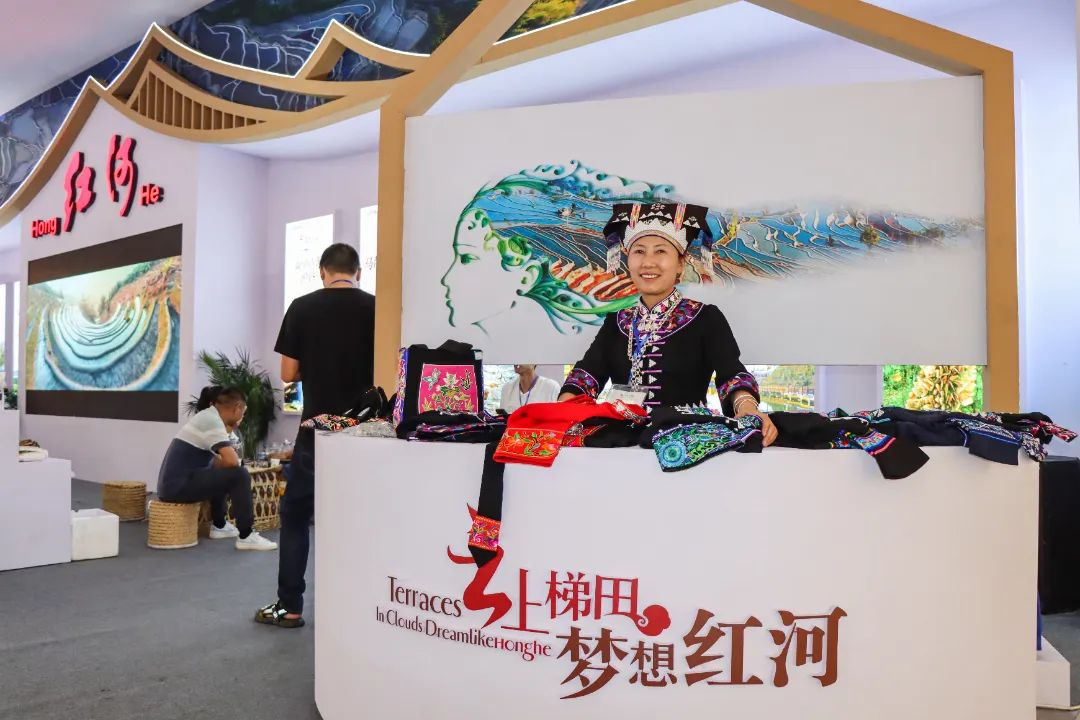 个室内展区特装馆和文旅及文创产品展览专区,从城市形象、重点企业、旅游资源和政策区位优势等角度,立体展示红河州在经济社会、口岸开放、对外贸易及跨境物流发展等方面取得的成效、蕴含的巨大潜力。