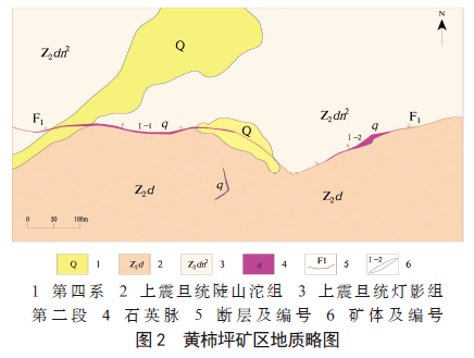 (2)矿体产于发育于寒武系高滩组含硅地层和燕山期花岗岩体的近南北向的张扭性断裂构造破碎带中,矿体连续性较好,地貌上常形成鳍状山脊及悬崖等地貌景观,具较为明显的地物特征。