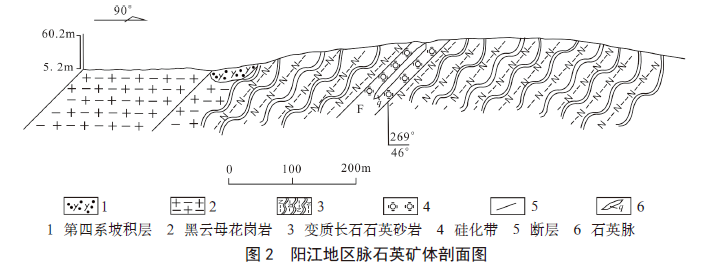 (1)阳江地区脉石英矿属中—低温热液充填型矿床,为岩浆活动分异出的高硅热液沿断裂构造充填形成的脉石英矿床。